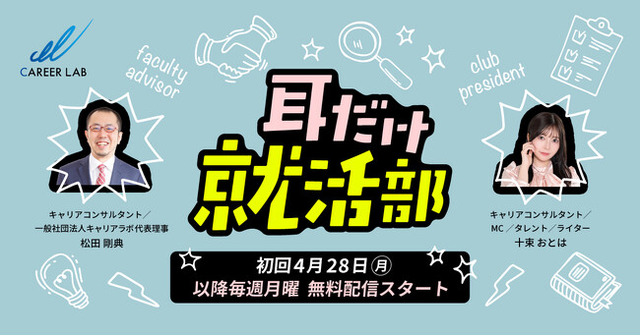 一般社団法人キャリアラボ(所在地:大阪市、代表理事:松田剛典)は、就職活動を始める学生たちに“耳から届く”新たなキャリアサポートとして、ポッドキャスト番組『耳だけ就活部』を2025年4月28日よりSpotifyにて配信開始いたします。