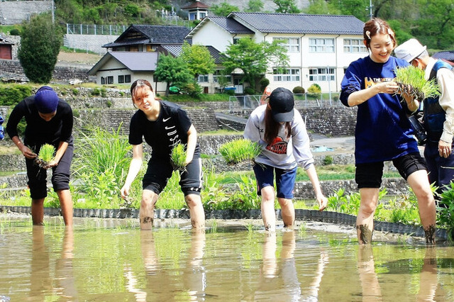 当日は、国内外から集まった14名の学生が参加し、地元農家やボランティアの方々のご指導のもと、昔ながらの田植え作業に挑戦します。普段は都市部で学ぶ学生にとって、足元の泥の感触や苗を植える手作業の感覚は新鮮で、教室では得られない貴重な学びの場となっています。海外からの留学生も参加しており、国境を越えた交流の機会にもなっています。