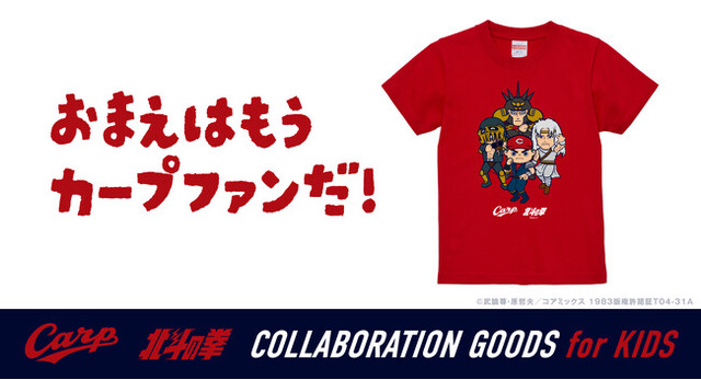この度、プロスポーツ関連、キャラクターIPグッズの企画、製造、販売を行う株式会社スペースエイジ(本社:広島県広島市、代表取締役:吉岡憲治)は、広島東洋カープと株式会社コアミックスの下、2025年の球団取り扱いグッズとして『北斗の拳』とコラボしたキッズTシャツを新たに発売します!
