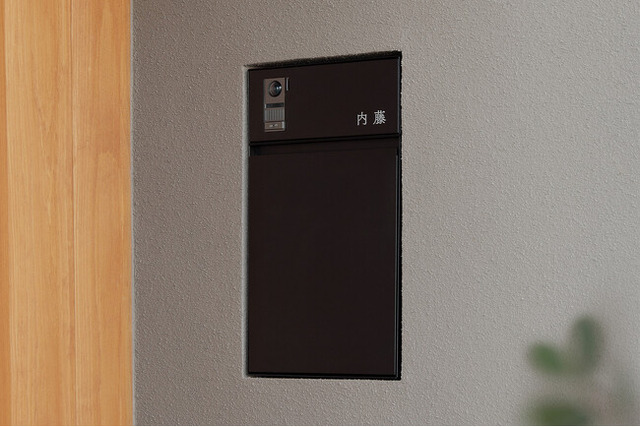 BrikのPost(郵便受け)は、扉を開けて投函する構造を採用することで、投函口が外から見えず、雨風の影響を受けにくく、郵便物が濡れにくい工夫も施されています。うすいフレームのデザインにより、造作のような佇まいで、洗練された印象に。