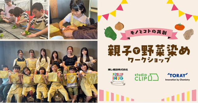 株式会社アダストリア(本部:東京都渋谷区渋谷2-21-1、代表取締役社長:木村 治)が展開する「studio CLIP(スタディオクリップ)」は、東レ株式会社(本社:東京都中央区、代表取締役社長:大矢 光雄、以下「東レ」)、東レ建設株式会社(本社:大阪市北区、代表取締役社長:古川 正人、以下「東レ建設」)は、“GATHERLIN”(ギャザリン)※1をコンセプトに、ウェルビーイングな暮らしを目指した「モノとコトの共創」として、2025年4月19日(土)、4月20日(日)の2日間にわたり、農・食・健康の複合施設「コスギアイハグ(KOSUGI iHUG)※2」(運営:東レ建設、所在地:神奈川県川崎市)において、主に小学生の親子を対象とした染色体験ワークショップを開催しました。