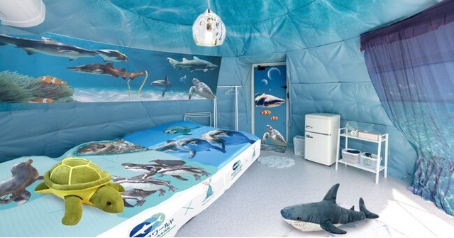 お部屋の中には、サメなどの海の仲間たちをモチーフにしたインテリアが多数登場!