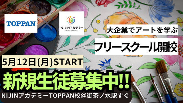 株式会社NIJIN(本社:東京都江東区、代表取締役:星野達郎)が運営する不登校オルタナティブスクール「NIJINアカデミー」は、TOPPANホールディングスのグループ会社であるTOPPAN芸造研株式会社(以下、TOPPAN芸造研)と連携し、アートに特化したハイブリッド型のフリースクール(以下、「リアル校」という。)「NIJINアカデミーTOPPAN校」を開校いたします。