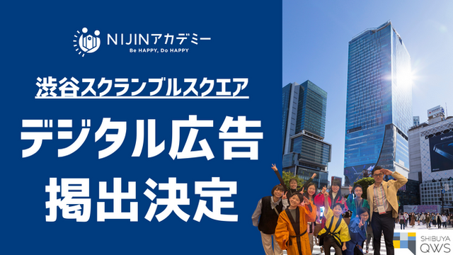 株式会社NIJIN(本社:東京都江東区、代表取締役:星野達郎)が運営する不登校オルタナティブスクール『NIJINアカデミー』のデジタル広告が、2025年5月12日(月)~5月18日(日)の期間限定で渋谷スクランブルスクエア各所に掲出させることが決まりました。