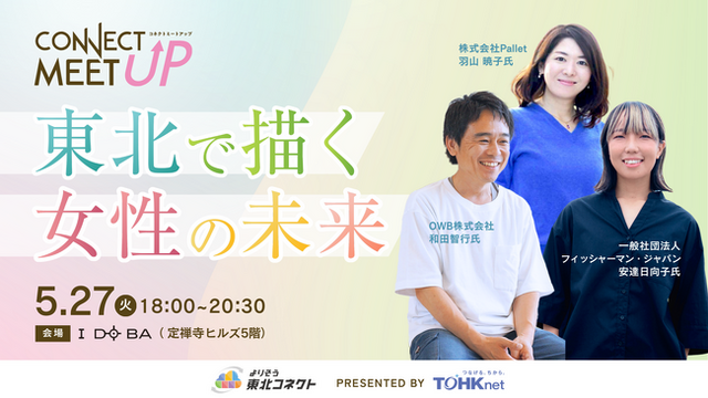 東北電力グループ、株式会社トークネット(本社:宮城県仙台市、代表:紀野國 文康)は、2025年5月27日(火)に仙台市内でリアルイベント「CONNECT MEET UP -東北で描く女性の未来-」を開催いたします。