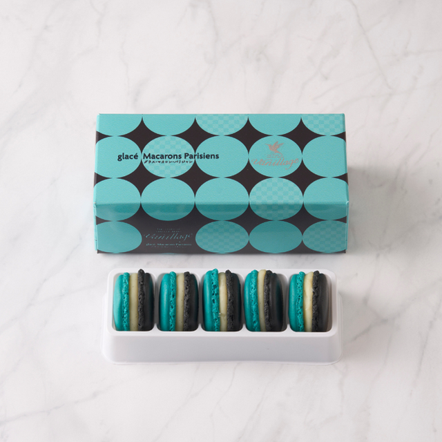 1.マカロンの生地の外側は「クッキーとマシュマロを合わせたような食感」、内側は「最中やキャラメルのような食感」の新食感スイーツです。口に含むと生地がとろけて中に挟まったガナッシュクリームと一緒になり、より濃厚な味わいとバニラの香りが口いっぱいに広がります。