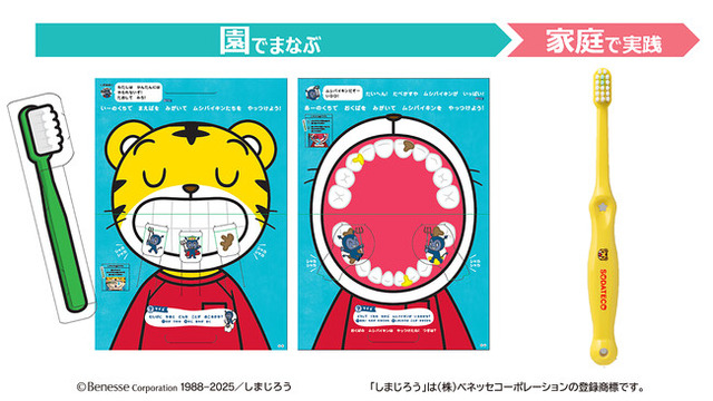 全国の保育園・幼稚園約1.5万園を対象に、園生活の中での歯みがき指導に活用できる「しまじろうと一緒に!歯みがき応援セット」をベネッセ「こどもちゃれんじ」が配布します。園向けには、しまじろうと一緒に紙ハブラシつきで歯みがきを実演できるしかけ絵本やポスター・CDを、家庭向けには、子どもが楽しみながら歯みがきができる「おうちで!はみがき ばっちりシート」を提供し、子どもたちが楽しみながら正しい歯みがき習慣を身につけられるようサポートします。