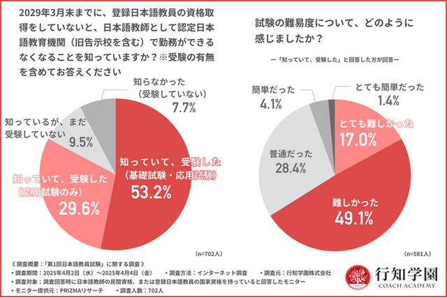 そこで今回、行知学園株式会社(https://careerup.coach-j-teacher.jp/kisoouyou/kouza)は、日本語教師の民間資格、または登録日本語教員の国家資格を持っている方を対象に、「第1回日本語教員試験」に関する調査を実施しました。