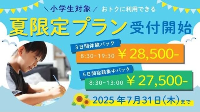 株式会社明光ネットワークジャパン(本社:東京都新宿区、代表取締役社長:岡本 光太郎)が運営をする、学びの根っこを育てる民間学童保育「明光キッズ」は、2025年5月7日より、小学生を対象に夏限定でお得に利用が出来る「夏のお試しプラン 2025」の受付を開始しました。
