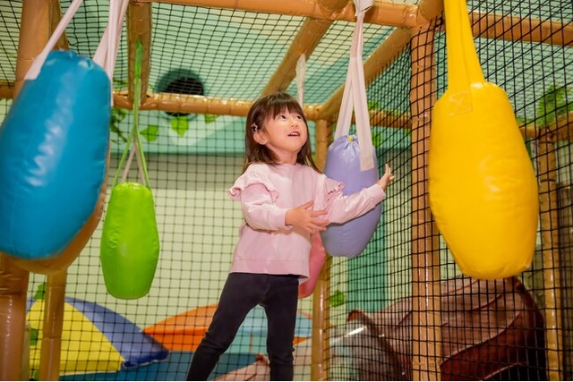 「海・島・生きもの」をイメージした室内で、アスレチックなどワクワクする遊具で遊ぶことができ、雨の日も晴れの日も快適にお楽しみいただけるキッズエリアです。0才から9才までのお子さまとそのご家族さまがご利用いただけます。7ヵ月未満のお子さまもご利用いただける幼児スペースや、休憩スペースもご用意しておりますので、ご家族皆さまでお過ごしいただけます。