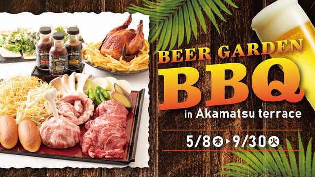 ソラーレ ホテルズ アンド リゾーツ株式会社(所在地:東京都港区、代表取締役社長:井上 理)が運営するロイヤルパインズホテル浦和(5F)居酒屋赤松では「BEER GARDEN BBQ in Akamatsu terrace」と題してビアガーデンBBQを2025年5月8日~9月30日の期間限定で開催いたします。丸鶏炭火焼付きBBQセットの他、平日限定BBQセットやキッズBBQセットを用意。信玄どりの丸焼きやマンガ肉など、ワイワイ盛り上がれるメニューが満載です。日本初上陸のジャックダニエルBBQソースももご賞味ください。生ビール(プレミアムモルツ)もセルフ飲み放題で心行くまでお楽しみください。雨など天候不良の場合は店内へ移動いただけます。