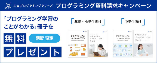 いまなら、Z会プログラミングシリーズの資料をご請求いただくと、無料でZ会オリジナルの「プログラミングのことがわかる冊子」が2冊もらえるキャンペーンを実施中です。
