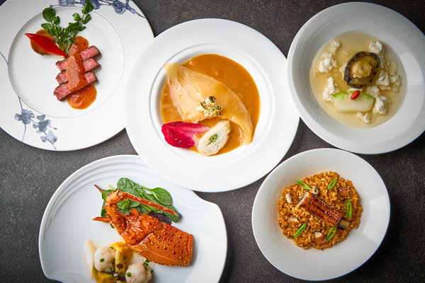 豪華食材を使用した料理にデザートの盛り合わせまで、全8品をお楽しみいただけるコースです。「ふかひれ姿煮」は、通常提供しているものよりさらに大きいサイズの厚みのあるものを贅沢に一枚使用し、艶やかなあめ色をしたとろみのついた醤油風味煮込みでご用意します。プリプリ食感の「イセエビ」は、旬の紫蘇と一緒に炒めて爽やかな香りとさっぱりとした味わいに仕上げました。A5ランクの仙台牛を使ったステーキは、柔らかで肉質のきめが細かく、まろやかな風味と肉汁が特徴です。豆板醤とにんにくを炒めた濃厚なガーリックソースとともにお召し上がりください。「蝦夷鮑と冬瓜蒸し 芙蓉ソースかけ」は、蝦夷鮑を丸々1個使い冬瓜とともに蒸して柔らかくし、ふわふわの卵白でとじた鶏肉とふかひれの旨みが溶け込んだ優しい味わいの逸品です。食事は3種類からお選びいただけます。初夏にぴったりな「冷やし麺」や、蒲焼仕立てにした「鰻入り炒飯」、豪華食材ふかひれを用いた「ふかひれ丼」より、その時の気分でお好みのものをご賞味ください。