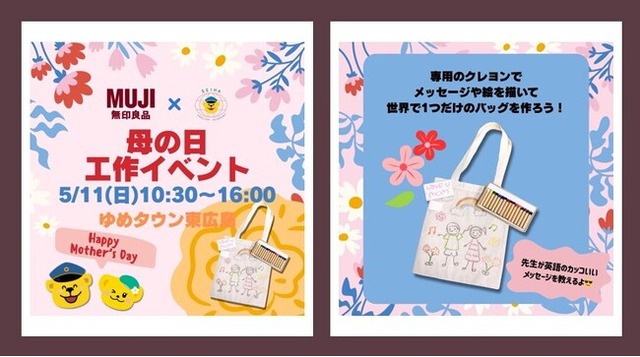 セイハネットワーク株式会社(本社:福岡県福岡市、代表取締役 坂口 正美)は、母の日にぴったりのスペシャルイベント「母の日 トートバッグ作り体験」をゆめタウン東広島教室にて開催いたします。このイベントは、無印良品さまとセイハ英語学院によるコラボレーション企画です。子どもたちが心をこめて作る“世界にひとつだけ”のトートバッグで、お母さんにありがとうの気持ちをお届けします。