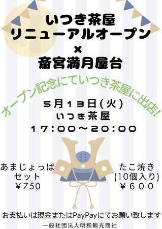 この記念として、毎月満月の日に開催している「満月屋台」を2025年5月13日(火)にいつき茶屋で開催します。