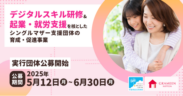 このたびグラミン日本は、当事業の助成先として、北海道、東北、北陸・甲信越、中国地方を優先地域とし、各地域において自立可能な形で生活困窮リスクを抱えるシングルマザーを支援する実行団体を公募します。なお、実行団体に対しては資金面での支援だけでなく、伴走による非資金面での支援も行う計画です。