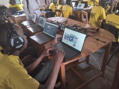 ルワンダ共和国ムハンガ教員養成校のモバイルツールを活用した学習の様子