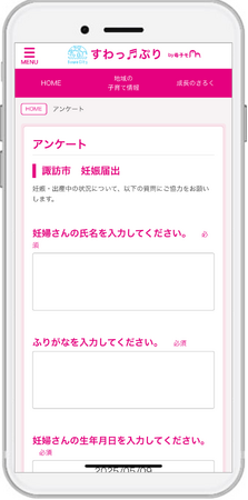 その一環として、2023年4月からは母子手帳アプリ『母子モ』を導入し、『すわっ♪ぷり』として提供しています。これにより、妊産婦と子どもの健康データの記録・管理や予防接種のスケジュール管理、出産育児に関するアドバイスや市が配信する地域情報などがアプリから確認可能となっています。