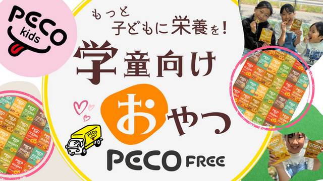 [画像2: https://prcdn.freetls.fastly.net/release_image/77766/29/77766-29-c2079b11cee90df628283dfbb666b267-1600x900.png?width=536&quality=85%2C75&format=jpeg&auto=webp&fit=bounds&bg-color=fff ]私たちPECOFREEは、成長期のお子様に不可欠な栄養素であるカルシウムや鉄分、DHA等を豊富に含んだおやつを、子どもの成長に必要な栄養を補えるお菓子を開発・販売しているKIDS SNACK LABと共同開発し、まずは学童施設に通う子どもたちへお届けします。私たち【PECO kids】は、子どもたちの大切な補食(おやつ)を単なる間食では終わらせません。子どもたちが一番楽しみにしているおやつの時間を、エネルギー補給、栄養バランスの向上、豊かな食体験の機会へと昇華させ、心身の健やかな発達を安心・安全な食を通じてサポートします。