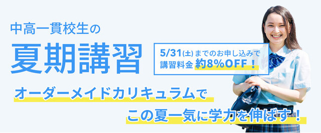 2025年5月31日(土)までに、7月19日(土)から開催される夏期講習にお申し込みいただいた方を対象に、夏期講習の料金が割引になるキャンペーンを実施いたします。