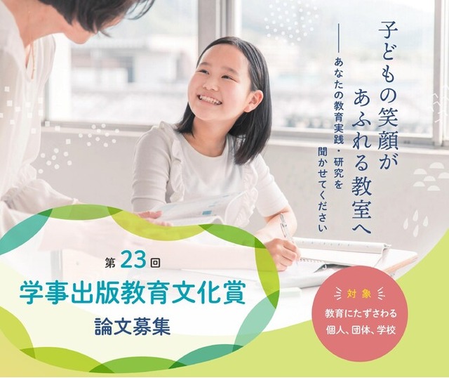 学事出版株式会社は、日本各地の様々な教育実践を幅広く紹介することで、教育関係者の新たな取り組みを奨励し、学校教育の質向上の一助となることを目指した第23回学事出版教育文化賞の論文募集を開始しました。