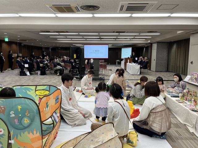 議場内にはピープルの玩具で遊べるプレイスペースを設置しています。