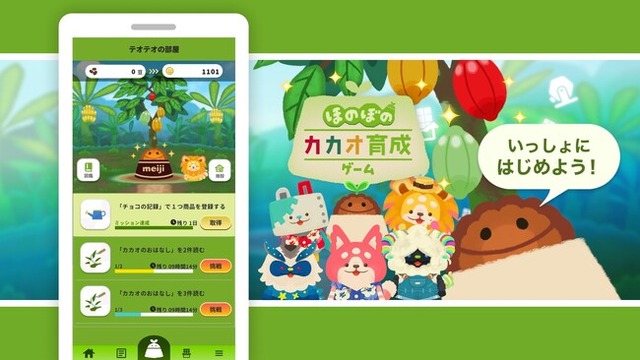株式会社明治(本社:東京都中央区、代表取締役社長:松田 克也)は、スマートフォン用アプリ「ほのぼのカカオ育成ゲーム~テオテオと過ごす癒しのカカオ農園~」をリリースいたしました。