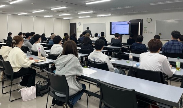 講義内では、Aicho Japanより「iN2X」の仕組みや開発背景、AI技術の現状と未来についても解説。後半の談話会では、サービスの将来性や起業の着想、制作の工夫など、実に多岐にわたる質問が寄せられ、新入学生の関心の高さがうかがえました。