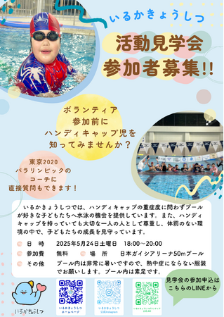 活動見学会 参加者募集中!! 東京2020パラリンピック競泳コーチでもある代表・高橋良彰による説明とQ&Aの時間も設け、日頃の疑問や専門的な指導方法についてもお答えします。