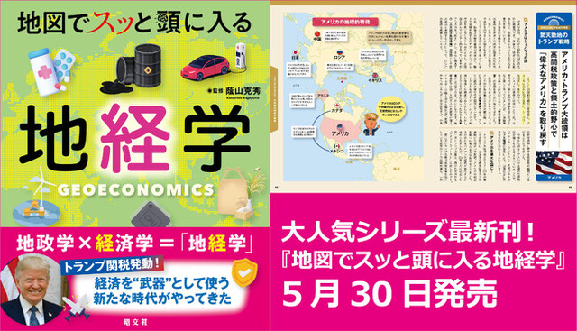 株式会社昭文社ホールディングス(本社:千代田区麹町、代表取締役社長 黒田茂夫、東証コード:9475)とその子会社である株式会社昭文社(本社:同上、代表取締役社長 川村哲也、以下昭文社)は、大人気シリーズ「スッと頭に入る」の最新刊として、『地図でスッと頭に入る地経学』を2025年5月30日より発売することをお知らせいたします。