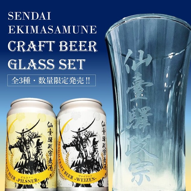 (1)仙臺驛政宗麦酒2本+オリジナルグラス1個セット