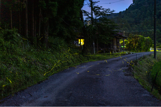 雨の粒が残る草木や清流の間を舞う蛍の光は、都会では決して見られない幻想的な光景です。
