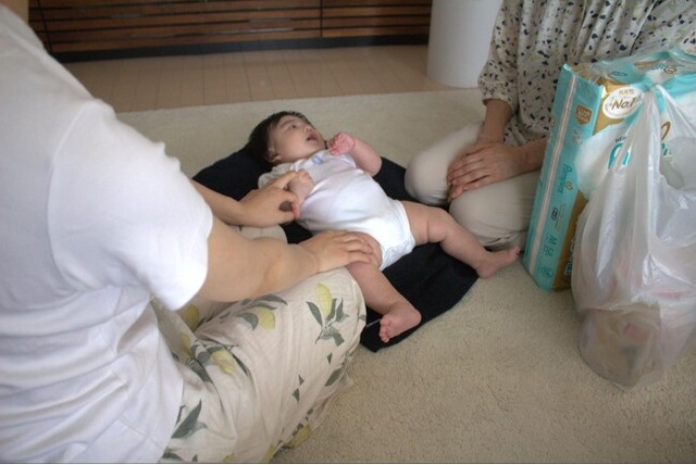訪問時には、オムツやミルク、肌着などのベビー用品、そして食品を持参します。1時間ほど対話の時間を持つことで、困りごとを把握し必要な支援へとつなげていきます。訪問時以外もLINEでつながるなど、身近なママ友のような感覚で親子に寄り添い、見守りを行います。