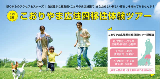 福島県郡山市は、福島県外在住で「こおりやま広域連携中枢都市圏(通称:こおりやま広域圏)」への移住に関心がある方を対象に、圏域内の魅力を伝えるとともに、移住後のミスマッチを軽減するための移住体験ツアーの参加者を募集しています。
