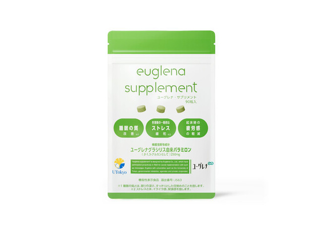 本商品は、機能性関与成分として「ユーグレナグラシリス由来パラミロン(β-1,3-グルカンとして)」を豊富に含んだユーグレナ社の独自素材を採用し、「作業時の一時的なストレス(イライラ感、緊張感)の緩和」、「睡眠の質(眠りの深さ、すっきりとした目覚め)の改善」、「起床時の疲労感の軽減」をサポートし、ストレスや睡眠に関する悩みに幅広くアプローチします。