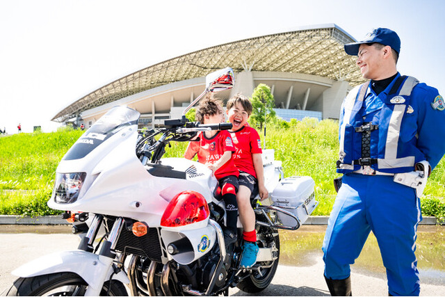 5月3日(土・祝)に埼玉スタジアムで開催された浦和レッズのホームゲームでは、ファミリー向けイベント『ゴールデン GoGoReds!デー』が開催された。年に1度の恒例イベントというGoGoReds!デーでは、小中高生指定席のほとんどが550円になるだけでなく、子どもたちが試合以外のイベントでも楽しめるイベントになっているとのこと。7 回目となる今回は、「はたらくのりもの大集合」や「警察お仕事体験」、専用通貨でお買い物体験ができる「REDS KIDS FAN SHOP」など、多彩なコンテンツが企画されたこともあり、試合開始4時間前から多くの家族連れがスタジアムを訪れ、会場は賑わいを見せていた。