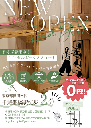 拠点となる「ギャラリーAGITO」(世田谷区・千歳船橋)では、募集開始以来、多くのお問い合わせをいただき、初回募集分の65枠は満席となりました。このたび、その反響を受けて追加枠として7枠を新たに設け、5月末までの期間限定で募集を開始いたします。