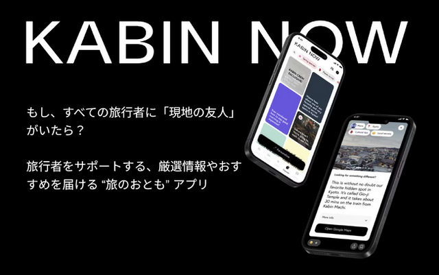 「KABIN Now」は、地域に暮らす住民からのおすすめ情報をダイレクトに届けることで、旅行者がまるで“地元の人”のように街を体験できる仕組みを実現するデジタル旅の相棒です。ガイドブックやSNS、AIアルゴリズムでは見つけられない、地元ならではの隠れた名所やタイミング、空気感を体感できる情報をお届けし、旅先での発見や地域との関わり方を根本から変える、新しい旅のスタイルを提案しています。