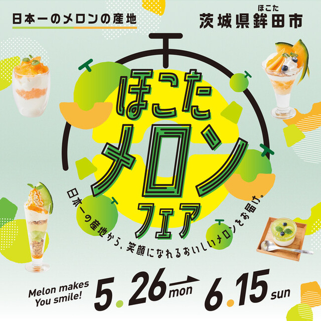 茨城県鉾田市は産出額日本一のメロン産地です。ルミネにて実施するメロンフェアとしては史上最大の27店舗が、旬のメロンを使った多彩な限定メニューを提供します。