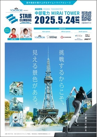 中部電力 MIRAI TOWER (所在地:愛知県名古屋市、運営:名古屋テレビ塔株式会社)では、2025年5月24日(土)に、「2025 STAIRCLIMBING CHALLENGE 名古屋大会(主催:株式会社ミーティング)」が開催されます。