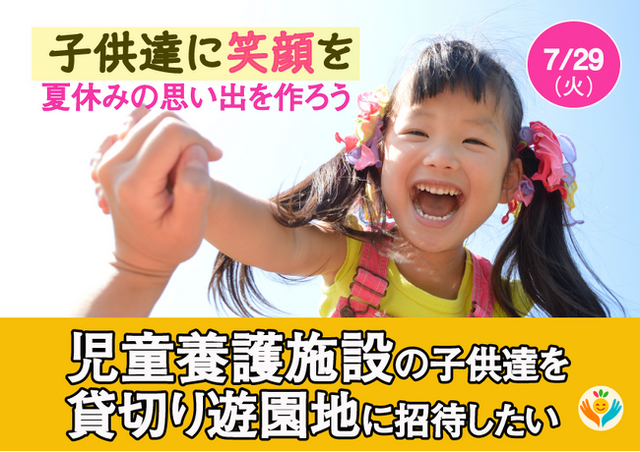【プロジェクト名】『子供達に笑顔を、夏休みの思い出を作ろう!児童養護施設の子供達を貸切り遊園地にご招待したい』
