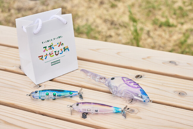子どもたちだけではなく保護者の方々も一緒となり、カラフルなペンやシールを使って一人ひとりが思う存分に自由なデザインを楽しみました。スパンコールをつけてポップなルアーがあったり、大阪・関西万博公式キャラクター「ミャクミャク」をデザインしたり…、ペイントを楽しむ子どもたちは創造力を膨らませながら「世界でひとつだけのルアーづくり」に夢中になって取り組んでいました。