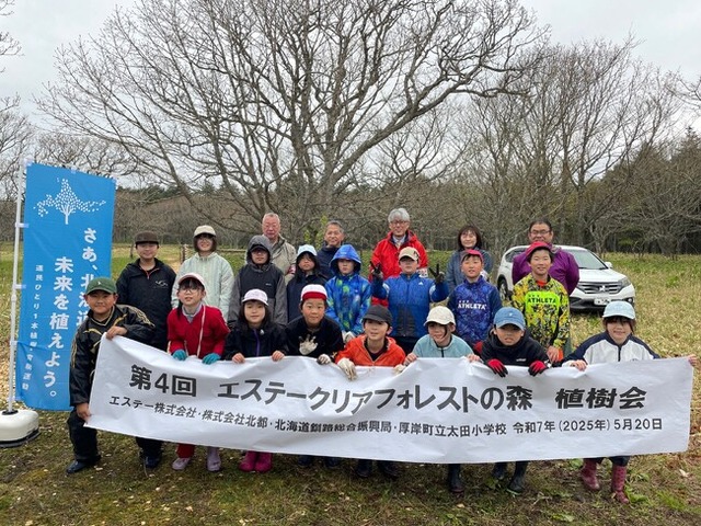 エステー株式会社(以下、「エステー」)は、北海道が推進する「ほっかいどう企業の森林づくり」協定に基づき、2025年5月20日に第4回となる「植樹会」及び「木育教室」を北海道厚岸町登喜岱(ほっかいどうあっけしちょうときたい)などで実施しました。