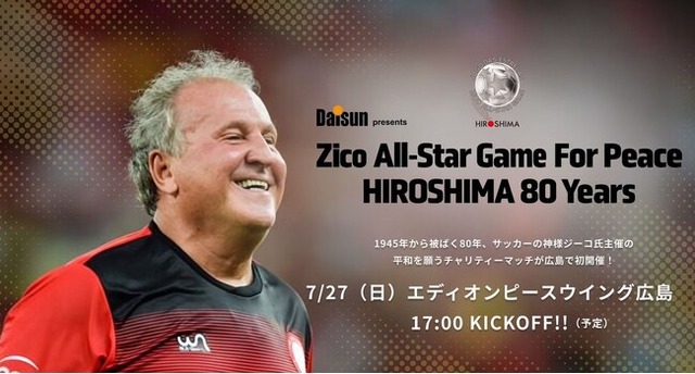 Zico All-Star Game For Peace HIROSHIMA 80 Years製作委員会(幹事会社:株式会社WealthTech Holdings 代表取締役 福井元明)は、平和を願う国際チャリティーマッチ「Zico All-Star Game For Peace HIROSHIMA 80 Years」(以下 本イベント)を、2025年7月27日(日)にエディオンピースウイング広島にて開催いたします。