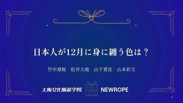 この授業内で、学生が実際に企画・データ分析した成果から、特に優秀と評価したレポートをシリーズで公開します。2025年の最終となる第4弾のテーマは「日本人が12月に身に纏う色は?」。