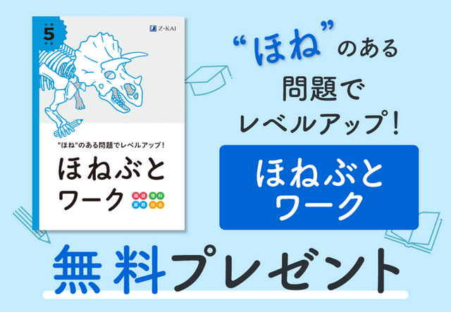 Z会小学生コース・小学生タブレットコースの資料をご請求いただいた方に、期間限定特典『ほねぶとワーク』をプレゼント。
