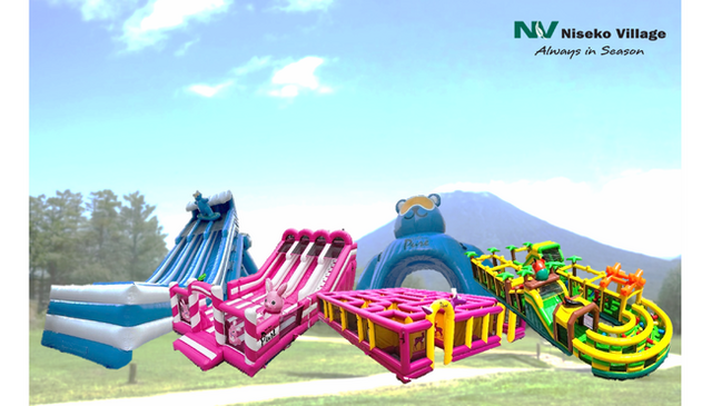 “跳ねる・すべる・くぐる・探検”をテーマにした、大型ふわふわ遊具がニセコの大自然に登場。中でも目玉は、高さ12メートル超の巨大スライダー。雄大な羊蹄山を背景に、空を滑空するような感覚を味わえる、圧倒的スケールのアトラクションです。