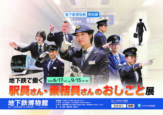 東京地下鉄株式会社(本社:東京都台東区、代表取締役社長:山村 明義、以下「東京メトロ」)は、公益財団法人メトロ文化財団(東京都千代田区、会長:奥 義光)が運営する地下鉄博物館において、2025年6月17日(火)~9月15日(月・祝)にかけて開催する特別展「地下鉄で働く駅員さん・乗務員さんのおしごと展」に協力いたします。
