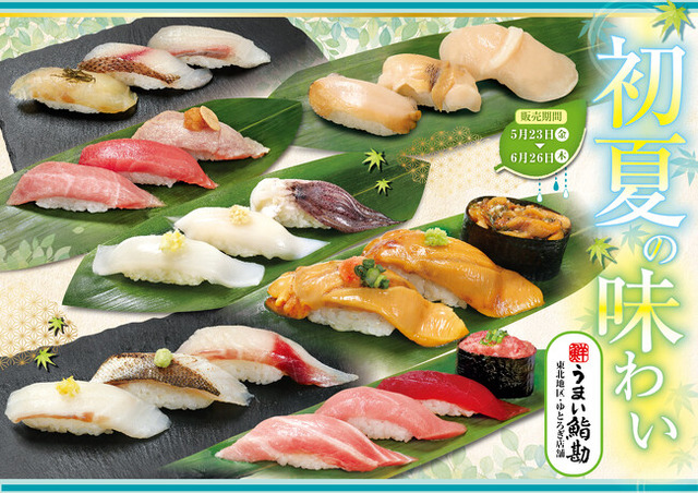 株式会社アミノ(本社:宮城県仙台市、代表取締役社長:上野 敏史)が運営する寿司業態 「うまい鮨勘」では、東北地区・ゆとろぎ店舗において「初夏の味わい」と題したフェアを2025年5月23日(金)から6月26日(木)までの期間限定で販売いたします。初夏を感じるネタが続々入荷。ぜひご賞味下さい!
