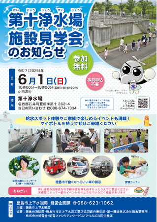 普段は見ることができない「第十浄水場」で、水をきれいにする仕組みを見てみませんか?給水スポット体験やご家族で楽しめるイベントも満載!マイボトルを持ってぜひご来場ください。